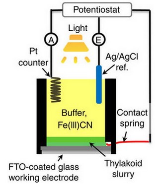 Lo scorso agosto i ricercatori del Technion-Israel Institute of Technology di Haifa hanno pubblicato un lavoro che propone un approccio innovativo: mettere insieme la luce solare e le membrane fotosintetiche delle foglie di spinacio in una cella bio-foto-elettro-chimica (BPEC) che genera, in condizioni di illuminazione, una forza elettromotrice in grado di facilitare la reazione di scissione dell'acqua per generare idrogeno.Le membrane tilacoidali estratte dalle foglie di spinacio sono introdotte nella cella BPEC contenente una soluzione tampone con ferrocianuro. In condizioni di illuminazione solare simulata, avviene l'ossidazione dell'acqua e gli elettroni vengono trasferiti attraverso la coppia redox Ferro/Ferrocianuro dalle tilacoidi a un elettrodo trasparente che funge da anodo, producendo una densità di corrente elettrica di 0,5 mA/cm2.