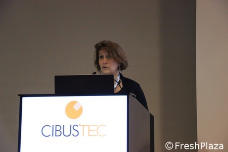 Roberta Paltrinieri, docente di Sociologia dei Consumi all'Università di Bologna, ieri al Cibus Tec, durante l'intervento sulla IV gamma.