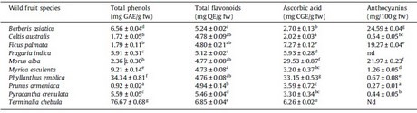 Fonte: Indra D. Bhatt, Sandeep Rawat, Amit Badhani, Ranbeer S. Rawal, ‘Nutraceutical potential of selected wild edible fruits of the Indian Himalayan region’, 2017, Food Chemistry, Vol. 215, pag. 84–91