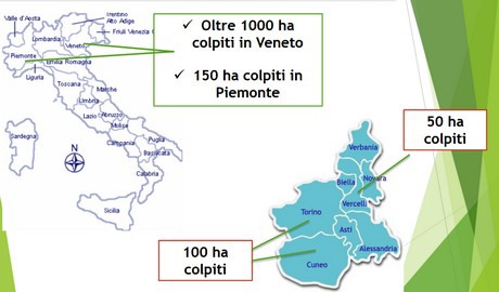 Chiara Morone, Settore Fitosanitario della Regione Piemonte, e Laura Bardi del CREA Piemonte hanno illustrato la risposta fisiologica della pianta ai fattori di stress idrico-ambientali. Chiara Morone ha evidenziato come le anomalie climatiche, in termini di andamento delle precipitazioni e delle temperature registrate da maggio a ottobre, dell'ultimo biennio potrebbero aver inciso sulla fisiologia della pianta, che è molto sensibile alle alternanze termiche. Ad esempio, il numero di giorni di scarto di temperatura >18°C, da maggio a settembre, è passato da 23 nel 2012, 18 nel 2015 a 45 nel 2016.