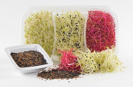 "I germogli di cipolla si prestano agli utilizzi più svariati, dagli antipasti, ai primi, ai secondi. Sono di altissimo valore nutrizionale, sia come antisettici che come diuretici e depurativi. Fantastici se usati per insaporire insalate, piatti di pesce (tonno in particolare), o con la carne. Il ravanello rosso purple è un ottimo germoglio a filamento robusto con fusto bianco-violaceo e foglioline rosso-viola. Delizioso per le insalate, i panini imbottiti e da saltare in padella, presenta un aroma specificatamente piccante e una consistenza croccante, tipica delle verdure tagliate alla julienne".