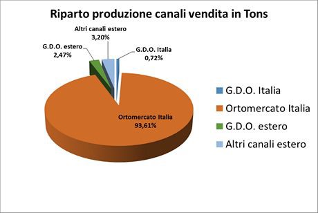L'OP distribuisce il 94% della sua produzione in Italia presso la GDO e mercati generali ed il restante 6% in Europa (Germania, Danimarca, Francia, Austria, Svezia, Polonia, Slovenia, Paesi Bassi, Ungheria, Svizzera).