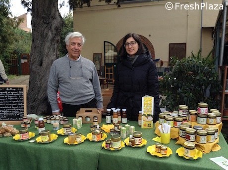 In foto: Elio Attinà, fondatore dell'Azienda Agricola Biologica, con la figlia Fulvia al MercatoBio Aguzzano a Roma.