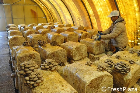 Se il composto è quello seminato con il micelio del fungo prataiolo, il terriccio viene steso nelle stanze di fruttificazione all'altezza di venti centimetri e coperto con uno strato di torba, bagnato in attesa della prima raccolta che avverrà dopo 3 settimane. Se il composto, invece, è quello seminato con il micelio del fungo pleurotus, il terriccio viene suddiviso in ballette che sono poste all'interno di apposite serre e umidificate in attesa della prima raccolta che avverrà mediamente dopo 5 o 6 settimane.