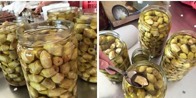 "Noi lo trasformiamo secondo un'antica ricetta tradizionale - sottolinea Romualdo - detta alla cafona con tutto il gambo e una ricca farcitura all'interno, aromatizzata con mentuccia romana, aglio tritato, peperoncino e olio extravergine d'oliva. Il carciofino più piccolo, invece, lo lavoriamo sempre sottolio in due versioni: o senza condimento o semplicemente grigliato".