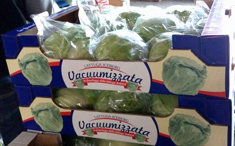 Cespi di Iceberg, pellicolati individualmente e sottoposti a vacuum cooler (per l'abbattimento rapido della temperatura in post-raccolta).