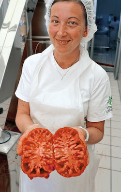 "Per fare la passata – continua Ester – i pomodori devono raggiungere il giusto grado di maturazione per garantirne la dolcezza. Ogni pomodoro viene raccolto a mano e questo permette una prima selezione direttamente nel campo".