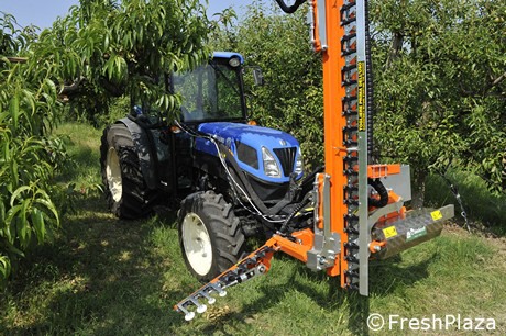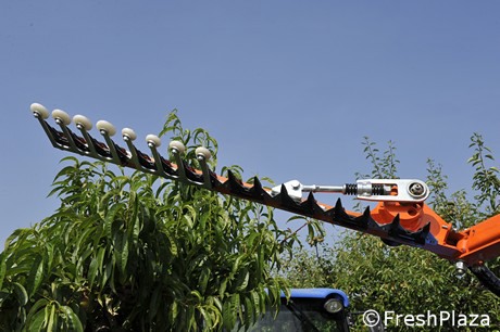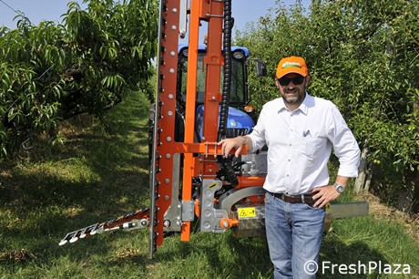 "Questa macchina può essere utilizzata su pomacee o drupacee - ha spiegato Fabio Buccioli, direttore commerciale di Rinieri - l'importante è che la forma di allevamento si adatti, quindi deve essere a spalliera, non in volume. Le lame permettono un taglio di rami fino a 3-4 centimetri di diametro. La barra verticale può essere alta da 2,50 a 3,40 metri. In più vi sono gli split superiore e inferiore".
