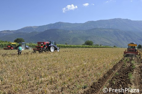 Quando i mazzi di aglio sono scaricati a terra, entrano in scena gli operatori che ripuliscono le radici dal terriccio e creano dei cumuli che poi saranno caricati e trasportati al magazzino. La raccolta deve essere effettuata nel più breve tempo possibile. In magazzino, poi, l'aglio viene steso al sole a essiccare: perderà circa il 50% rispetto al peso iniziale. E, se piove, va coperto in fretta e furia con dei teli, per poi scoprirlo appena termina la pioggia.