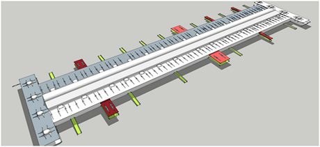 Completano la struttura la copertura vera e propria realizzata con l'accostamento di "pannelli sandwich". All'intradosso della copertura verranno posizionati 78 corpi illuminanti a led per garantire anche un'idonea illuminazione degli ambienti di lavoro sottostanti.