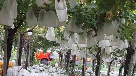 "L'idea era quella di creare una barriera fisica - spiega l'agronomo - che potesse salvaguardare l'uva dagli attacchi degli agenti esterni. L'insacchettamento dei grappoli (vedi foto sotto) è una tecnica di coltivazione che ha contraddistinto e che contraddistingue ancora oggi l'azienda Golden Grapes da tutte le altre".