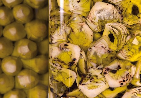 Gli ortaggi vengono coltivati secondo il disciplinare bio e trasformati in modo artigianale: melanzane, peperoni, carciofini, zucca, zucchine, sedano, olive, olio extra vergine di oliva, aceto di vino, aglio, origano, peperoncino e sale.
