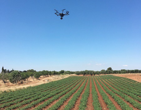Panoramica dei terreni dell'azienda Calemone, monitorati da un drone. La tecnologia avanzata consente di migliorare la qualità delle produzioni attraverso il controllo su stato di irrigazione, infestazioni parassitarie, raccolto, eventuali malattie delle piante.
