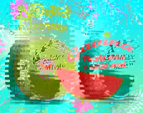 L'immagine scelta per connotare Gavina è meno "istituzionale" di quella del melone Majores: si è optato per uno stile più dinamico, leggero... diciamo più estivo.