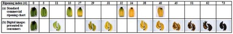 "Come caso studio sono state prese in considerazione le banane Cavendish che sono state valutate con 300 consumatori provenienti da Argentina, Ecuador e Spagna. Un set di 10 immagini digitali di banane che vanno dal totalmente verde al sovramaturo sono state sottoposte per la prima volta a un panel di esperti per assicurare che vi siano differenze significative tra di loro su una scala di maturazione".