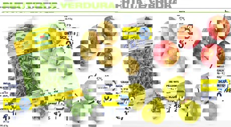 Le promozioni ortofrutticole in atto fino al 9 settembre 2017 sul volantino Superstore Esselunga sono: patate a 0,45 euro/kg (sconto 40%); insalatina in busta da 200 g a 1,18 euro (sconto 40%); mele Gala a 0,98 euro/kg (sconto 30%); pere William's a 1,28 euro/kg (sconto 40%).