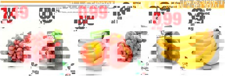 Dal 4 al 6 settembre 2017, il volantino Eurospin propone: uva rosata italiana a 1,49 euro/kg; pesche gialle italiane in cestino a 0,99 euro; banane a 0,99 euro/kg.Nel volantino Eurospin Speciale si aggiungono, sempre nelle stesse date: fichi d'India, coltivati in Italia, a 1,49 euro per cestino; meloni retati italiani a 0,99 euro/kg.