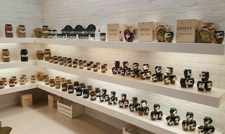 La linea dei prodotti Spina "Sapori di Puglia" presso il punto vendita Eataly di Bari.