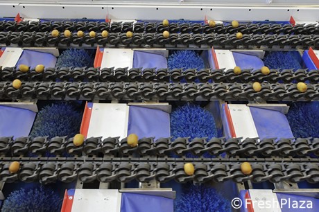 "E' l'impianto più potente d'Europa, attualmente - riprende Moretti - grazie alle sue 8+8 linee e 32 uscite. La linea di confezionamento è formata da due sistemi, anch'essi in parallelo, e ha una potenzialità di 18-20 tonnellate l'ora. Su questa nuova linea, il sistema qualità della macchina procede alla rilevazione di tutte le variabili e dei difetti esterni, ma anche della qualità interna del singolo frutto, ossia è in grado di identificare le anomalie della polpa del frutto (parti morbide, ammaccature, danni da insetto, marcescenze, sovramaturo)".