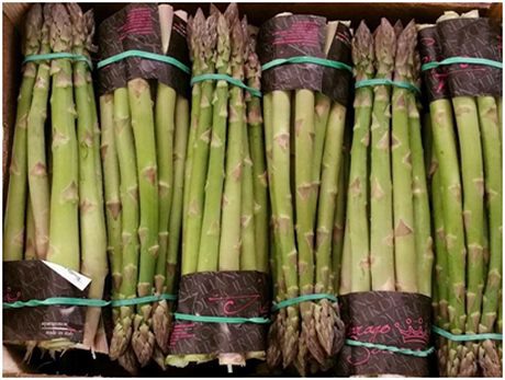 - asparagi "punte" sfusi in cassetta da 6 Kg – lunghezza massima 12 cm, colorazione verde.