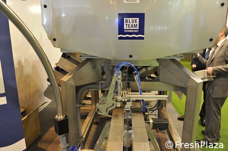 "La nostra pesatrice esposta a Madrid - ha spiegato Fabrizio Franceschini direttore vendite della Blue Team - ha un'impostazione che, per certi versi, si rifà ad altre macchine simili. Quello che la distingue dalle altre, ed è l'innovazione presentata, è la possibilità del cambio automatico del formato. In pratica, andiamo a pesare dai bicchieri 7x7, che tanto vanno di moda oggi grazie alla frutta snack da consumare ovunque, fino alla cassettina 20x30".