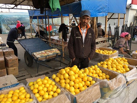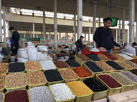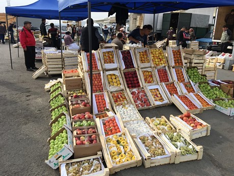 In questo periodo autunnale, le produzioni locali più presenti sono: uva da tavola - di cui l'Uzbekistan è grande produttore ed esportatore - mele, melograno, kaki, pere asiatiche, pere europee tra cui anche Abate Fetel.