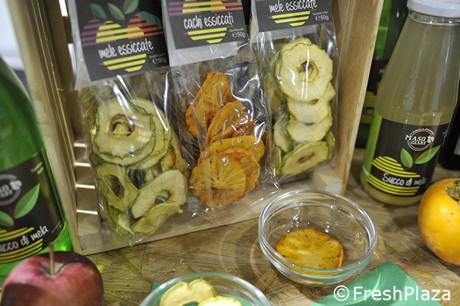 Fra le aziende agricole che hanno esposto i propri prodotti in fiera, la "Maso Giare" che ha portato i kaki essiccati. E se le mele essiccate sono un prodotto classico, il kako è una novità. L'essiccazione dura 22 ore e si deve partire da un frutto con maturazione media. Altro prodotto-novità è un succo di kiwi verde e mele Golden, così come la marmellata di kiwi.