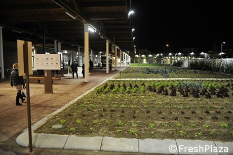 Alle spalle della zona di "trasformazione" e vendita, che sono all'interno della struttura, vi è la zona "produzione". Ovviamente si tratta di una riproposizione, una specie di orticello senza pretese che include, al momento, piante di verdure invernali (trapiantate già grandi), più alcune piante arboree tipo pero, pesco, ciliegio. Con tanto di prati all'inglese e sentieri con candidi sassolini.