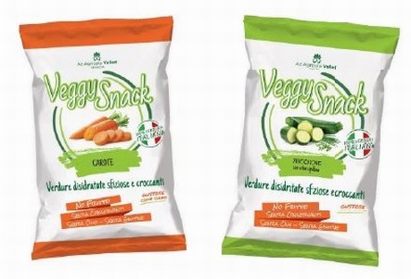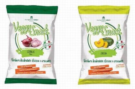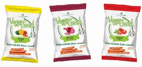 Costituita al momento da 7 referenze - ben individuate mediante altrettante livree di colore diverso - la linea è stata battezzata "VeggySnack" ed è stata ufficialmente presentata al pubblico sabato scorso, 11 novembre, in occasione della fiera Cosmofood, dove ha incontrato ottimi riscontri. I gusti sono: zucca, zucchine con erba cipollina, pomodori con basilico, rape rosse "erbette", peperoni assortiti, cipolla rossa e carote.