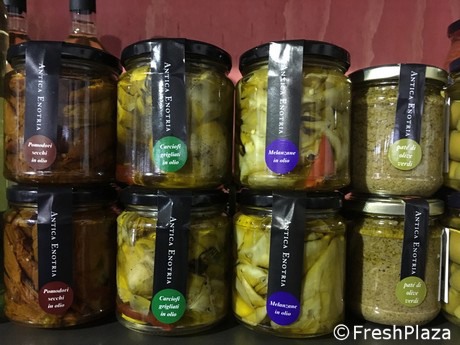 "I carciofi freschi, prodotti con cura nei campi della masseria, vengono puliti a mano e trasformati con trattamenti naturali a base di aceto, sale e limone, che ne esaltano il gusto e le fragranza. Conservati nel nostro olio extravergine di oliva, hanno un gusto deciso e accattivante. Nel dettaglio, i carciofi vengono lasciati a macerare con acqua, sale e limone e processati a crudo: solo al momento dell'invasettamento vengono scottati con acqua e aceto. I carciofi alla brace, invece, sono un piatto praticamente già pronto: basterà aprire il vasetto e servirli con una fetta di pane. Sono croccanti e saporiti come appena raccolti. Squisiti come antipasto, racchiudono in sé tutto il sapore delle conserve preparate in casa secondo le tradizioni pugliesi. Le migliori melanzane coltivate in azienda vengono lavorate e confezionate a mano, sempre secondo un'antica ricetta di famiglia. Il risultato è un prodotto tipico, dal gusto deciso e fragrante: sono ottime per sfiziosi antipasti e contorni"."Tra i progetti futuri - conclude Luigi - c'è quello di ampliare la gamma delle referenze con la produzione, per esempio, di nuove varietà di pomodoro giallo. Intendiamo diffondere ancor di più il nostro marchio, a garanzia di prodotto di alta qualità. I nostri prodotti vengono commercializzati per il 60% in Italia in negozi specializzati: tra questi, siamo orgogliosi di essere presenti nelle catene di vendita Eataly, mentre per i mercati esteri siamo presenti con il 40% del fatturato in Germania, Stati Uniti e Gran Bretagna".