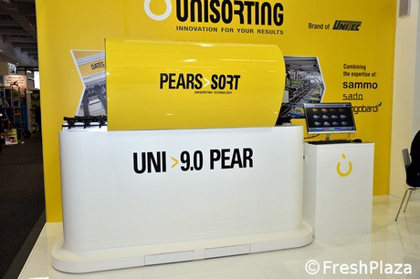 Come noto, le pere sono prodotti pregiati ma delicati: per trattarli con gentilezza, il gruppo Unitec (in questo caso sotto il suo marchio Unisorting) ha sviluppato un sistema di trasporto completamente diverso per evitare di danneggiarli. Pear Sort lavora effettuando una doppia visione del frutto, "inquadrato" da una prospettiva, poi da un'altra. Le immagini così ottenute vengono istantaneamente comparate da un sistema elettronico. Ciò consente di rilevare non solo eventuali difetti esterni ma, ancor più importante, pecche interne al frutto che potrebbero comprometterne la spendibilità commerciale. Il tutto nonostante la forma irregolare delle pere.