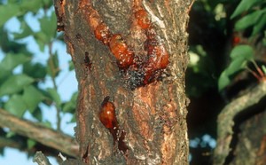 I ricercatori dell'Università di Modena e Reggio Emilia in collaborazione con il Centro di Ricerca per la Frutticoltura di Roma hanno prelevato 31 isolati da frutteti di albicocche (Prunus armeniaca L.) ubicati nell'Italia nord-orientale che mostravano sintomi di fuoriuscita di essudati gommosi, per lo più durante tre successive stagioni di crescita (2014-2016).Questi isolati sono stati identificati mediante la morfologia della colonia, la patogenicità (reazione ipersensibile nelle foglie di tabacco e rilevazione di geni di codifica della siringomicina e della coronatina), le caratteristiche genetiche (BLASTn analisi del gene rpoD) e i test fisiologici (GATTa) come ceppi di Pseudomonas syringae pv. syringae e di P. syringae pv. morsprunorum razza 1 e razza 2, rispettivamente.