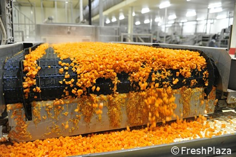 Oltre alle linee di spinaci, era in funzione quella delle carote. Dopo il lavaggio, la cuticola esterna viene fatta letteralmente "esplodere" con 12 Atmosfere di pressione, e poi un sistema di spazzole le ripulisce. Al taglio, le parti apicali vengono eliminate ma la macchina a lettore ottico espelle comunque ogni altra parte che presenti un colore fuori standard.