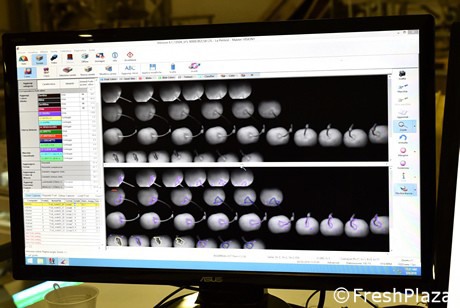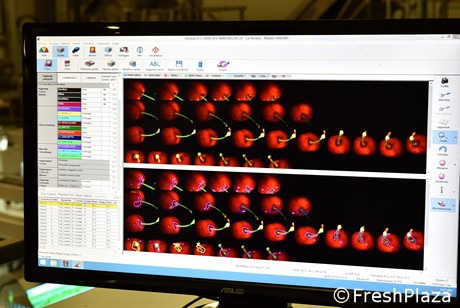 Sopra e sotto: visione difetti esterni e interni delle ciliegie in fase di selezione e calibratura