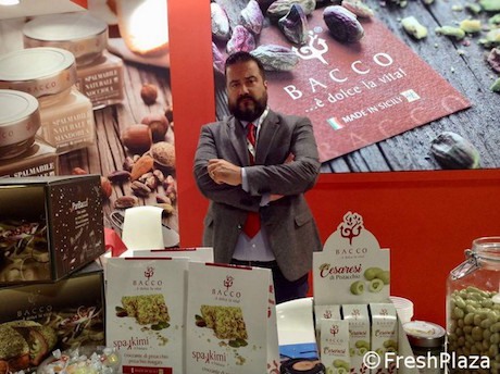 Claudio Luca, fondatore dell'azienda siciliana Bacco, produce e trasforma pistacchi e frutta secca e realizza creme, confetture, liquori e altre prelibatezze.