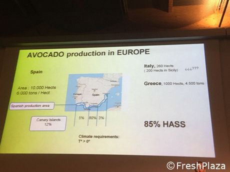 (Slide Colilles) Spagna maggiore produttore europeo. In Italia i numeri sono aleatori, mentre la Grecia sembra avere standard produttivi inferiori. L'85% dell'avocado è Hass.