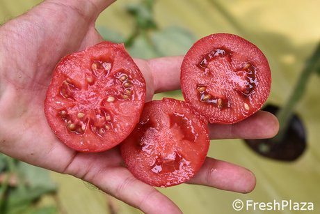 La vivace colorazione interna dei pomodori ad alto contenuto di licopene.