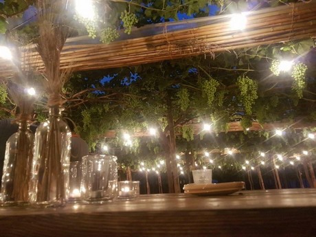 Sotto un pergolato illuminato, spazio a un'insolita e incantevole zona catering per i visitatori e gli ospiti: per una visita che rimarrà certamente indimenticabile.