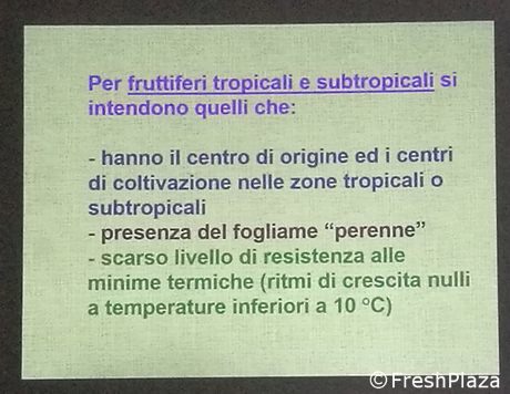 Cosa si intende per fruttiferi tropicali e subtropicali? "Non parliamo genericamente di fruttiferi esotici - ha detto La Malfa - perché il termine esotico non fornisce nessun riferimento, né dal punto di vista geografico né dal punto di vista climatico. Ci riferiamo invece a fruttiferi che hanno origine in zone del pianeta che sono caratterizzate dal clima tropicale e subtropicale, quindi la classificazione climatica viene ancor prima della classificazione geografica. In funzione della loro origine, hanno genericamente una scarsa resistenza alle minime termiche e non presentano alcuno sviluppo al di sotto dei 10 gradi".