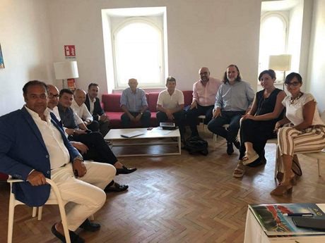 Sopra, Mauro Rosati (3° da dx.) e il team del Consorzio