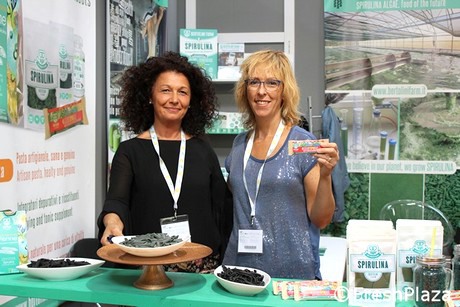 "E' uno degli alimenti più completi e bilanciati che la natura ci offre - racconta la responsabile commerciale Caterina Arena (a sinistra nella foto sopra) quando ci presentiamo allo stand affollato - Qui in fiera abbiamo portato la nostra spirulina in spaghettini, scaglie e polvere, in buste stand-up salva freschezza, ognuna delle quali si adatta a un determinato utilizzo; le penne Spirpasta fatte con grano duro e spirulina, che un po' rappresentano la tradizione e l'innovazione dell'azienda che in passato ha iniziato in ambitocerealicolo; la Energy Spir Bar, barretta energetica, ideale per chi pratica sport".