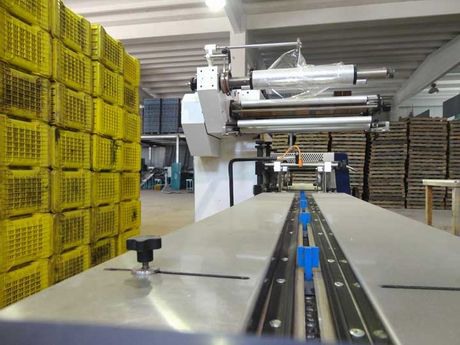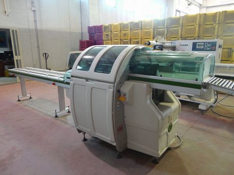 Macchinari per il confezionamento dei cachi all'interno dello stabilimento della soc. agr. Divano.