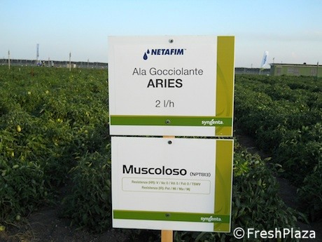 "Quello che si può osservare qui - continua Scrano - con un salto in un futuro oramai prossimo, è una serie di parcelle con diverse soluzioni mirate a garantire ai produttori stabilità del reddito e tranquillità nello svolgimento della propria attività, grazie a soluzioni mirate a ridurre i rischi e i costi. A disposizione dei visitatori, le soluzioni più avanzate in fatto di genetica innovativa - innestata su particolari portinnesti per garantire vigore, resistenza e alta produttività - ma anche abbinata alla protezione chimica per ridurre il rischio di perdita di produzione. E, ancora, la pacciamatura in Mater-Bi biodegradabile e compostabile in loco e le soluzioni per l'irrigazione Netafim."