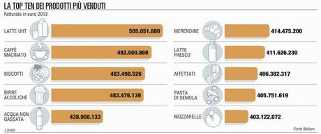 Come riportato da La Repubblica: "Il prodotto più venduto in assoluto è stato il latte UHT (a lunga conservazione), che da solo ha fatto registrare vendite superiori al mezzo miliardo di euro, con un crescita del 4,5% rispetto all'anno precedente. Negli ultimi anni, il latte a lunga conservazione ha rubato quote di mercato a quello fresco, che si posiziona pur sempre in settima posizione con vendite per 411 milioni di euro (-1,2%)."