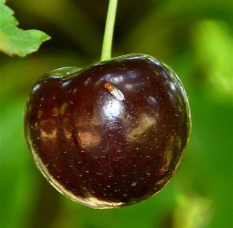 Un insetto di Drosophila suzukii su una ciliegia. (Foto d'archivio)