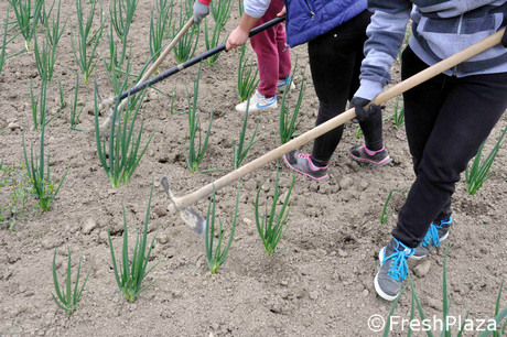 Sopra e sotto: Bunching Onion, lavorazione manuale.