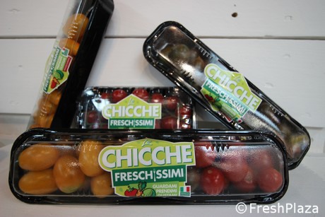 Infatti la linea non comprende soltanto ortaggi baby, ma anche un packaging in formato apri-e-chiudi, tra cui anche i bicchieri tipo shaker. Le Chicche comprendono referenze quali pomodori ciliegini, mix di datterini, zenzero, topinambur, mini cetrioli e, novità nella novità, le giuggiole.