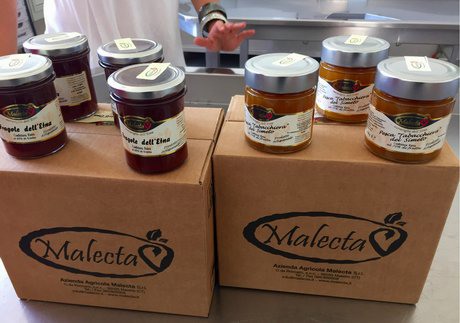 Il fiore all'occhiello della produzione è costituito dalle fragole e fragoline di bosco, ma Malecta trasforma anche altri frutti provenienti esclusivamente da coltivazioni locali come arance siciliane, mandarini tardivi, more di rovo, fico nero, lamponi e le pere Coscia che crescono lungo le rive del fiume Simeto, che scorre appena a pochi chilometri dall'azienda. L'azienda segue un disciplinare di controllo della filiera molto rigoroso e un sistema di rintracciabilità interna in grado di definire perfino da quale serra provengono le fragole e le fragoline utilizzate per ogni lotto di lavorazione.