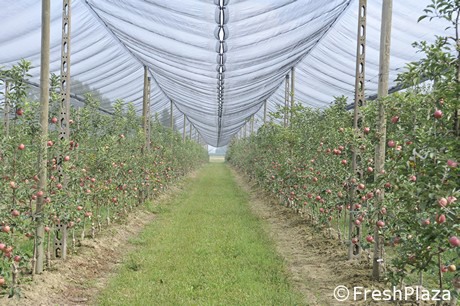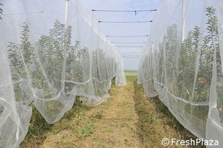 L'impianto di primo anno dell'azienda Alpi. I meli sono stati piantati come ristoppio in un terreno che ospita meli da oltre 40 anni