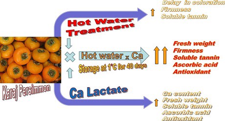 I risultati hanno mostrato che la quantità di calcio nel frutto è aumentata solo nel trattamento con lattato di calcio, mentre il trattamento con acqua calda ha mostrato un lieve effetto sul contenuto di calcio. La combinazione di lattato di calcio con i diversi trattamenti di acqua calda ha avuto un maggiore effetto su mantenimento della consistenza, controllo della perdita di peso e mantenimento della qualità del frutto rispetto all'applicazione del trattamento singolo.